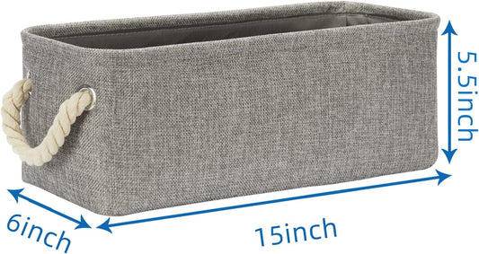 Temary Small Storage Baskets for Organizing, Narrow Baskets for Storage Toilet Paper Rolls, Fabric Baskets with Handles for Closets, Cabinets, Shelves (Grey, 15Lx6Wx5.5H Inches)