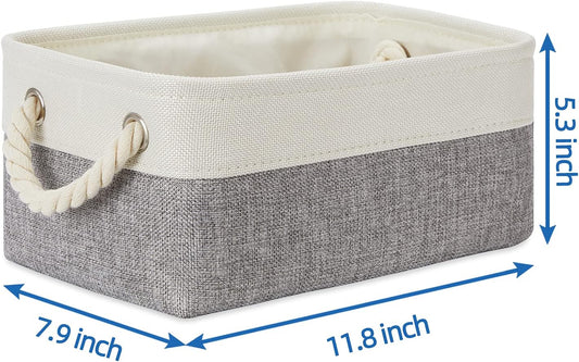Temary Small Storage Baskets for Organizing 6Pcs Small Storage Bins, Decorative Collapsible Fabric Gift Baskets Empty for Home (White&Grey,11.8L x 7.9W x 5.3H inches)