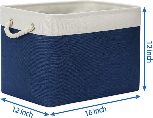 Temary Storage Baskets for Shelves, 2 Pcs Fabric Storage Bins Empty Gift Baskets for Organizing Clothes, Books, Decorative Basket with Rope Handles (White&Blue,16Lx12Wx12H Inches)