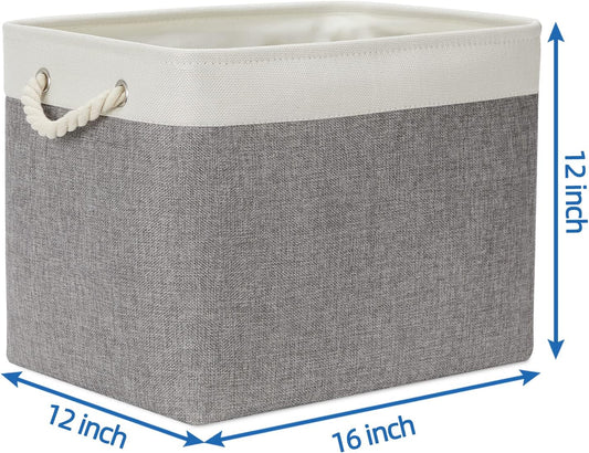 Temary Baskets for Organizing, 2 Pack Storage Baskets Large Fabric Baskets with Handles, Decorative Basket for Gifts Empty for Home (White&Grey,16Lx12Wx12H Inches)