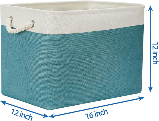 Temary Fabric Baskets Storage Baskets for Organizing 2 Pcs Decorative Baskets for Gifts Empty Collapsible Storage Bins for Home Closet(White&Teal,16Lx12Wx12H Inches)