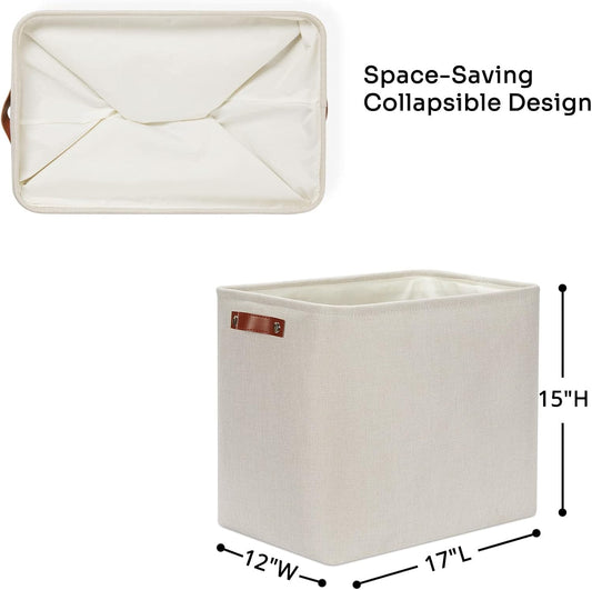 DULLEMELO 2-Pack Large Storage Baskets for Organizing 16"x12"x12" Canvas Fabric Storage Basket Bins With Leather Handles for Shelf Clothes Empty Gift Basket (Beige)