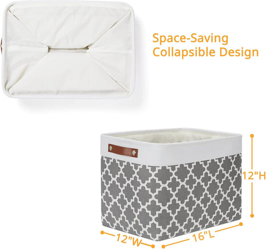 DULLEMELO Storage Baskets Large 17"x12"x15" Foldable Rectangular Storage Bins Baskets for Organizing [2 Pack] Fabric Nursery Storage Baskets for Home,Office,Closet,Clothes,Toys (White&Lattice Grey)