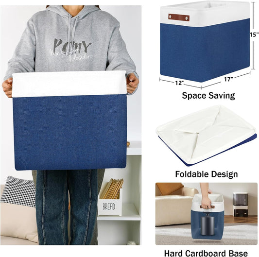 DULLEMELO Large Rectangular Baskets for Storage 16"x12"x12" [2 Pack] Collapsible Storage Baskets for Organizing Closet, Clothes, Toys (White & Blue)
