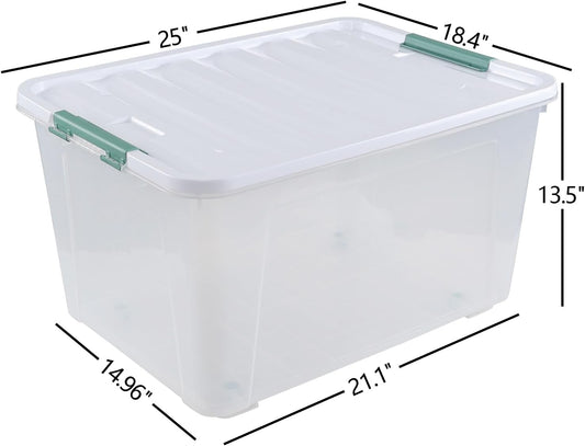 70 Quart Large Clear Storage Bins, Plastic Storage Box with Lids and Wheels, 4 Packs