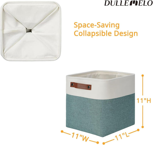 DULLEMELO 11x11 Cube Storage Bins for Organizer, Foldable Cube Storage Bins for Organizing Home Office Closet Shelves, Fabric Cube Baskets for Home Organization(4 Pack - White&Deep Green)