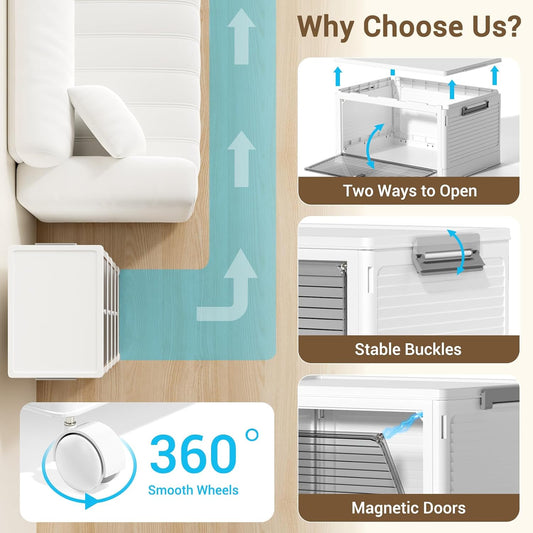 45GAL/180QT 3 Tier Large Stackable Storage Bins with Lids and Wheels, Collapsible Storage Bins Plastic with Doors, Suitable for Clothes, Closet, Home and Office