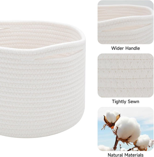 Small Basket for Organizing | Cube Shelf Closet Storage Baskets | 9.7×9.7×7.1” | Woven Rope Gift Basket | Nursery | Round 3 Packs Off White