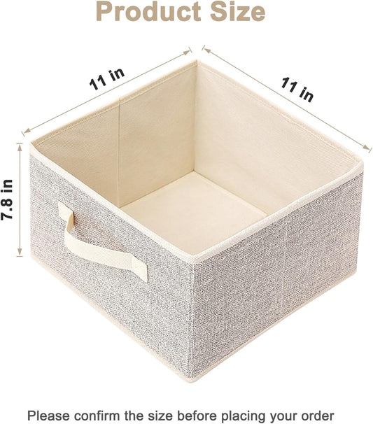 Storage Baskets, 11-Inch Woven Fabric Bins, Storage Cubes with Reinforced Handles, Organizer Bins for Closet Shelves, Foldable, for Toys, Clothes, Natural Beige (2PCS/Grey-11*11*7.8inch)