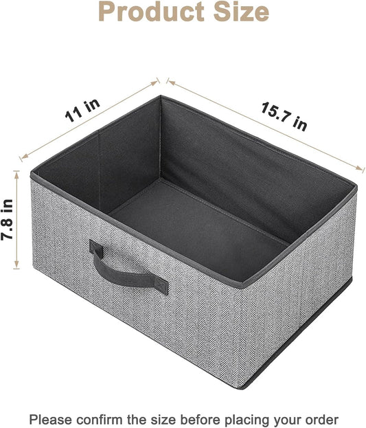 Storage Baskets, 15.7 Inch Woven Fabric Bins, Storage Cubes with Reinforced Handles, Organizer Bins for Closet Shelves, Foldable, for Toys, Clothes, Natural Beige (4PCS/Grey-15.7*11*7.8inch)