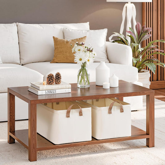 StorageWorks 45L Extra Large Fabric Storage Bins with PU Handles, Storage Baskets for Organizing, Large Laundry Basket, 2-Pack, Beige, 19" L X 13.25" W X 11" H