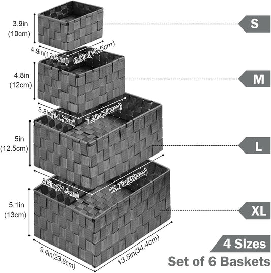 Woven Storage Baskets, Storage Bins, Cube Basket Container Baskets Storage Boxes Organizers for Clothes /Shelves/ Closet, Set of 6 (Grey)
