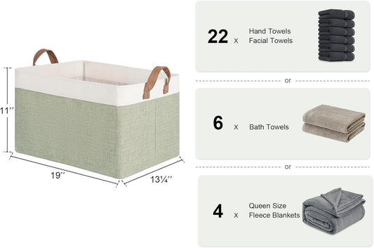 StorageWorks Storage Bins, Fabric Storage Bins for Shelves, Extra Large Storage Baskets with Metal Frame, Closet Baskets and Bins with Handles, Jumbo, Green and White, 2-Pack