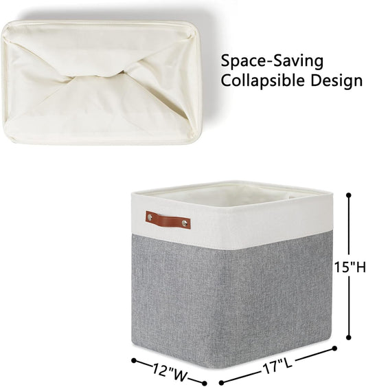 DULLEMELO Extra Large Storage Baskets for Organizing 22"x15"x13" Foldable Fabric Storage Baskets Organizer Bins with Handles Large Storage Basket for Shelves Closet Toys Books (White&Grey)