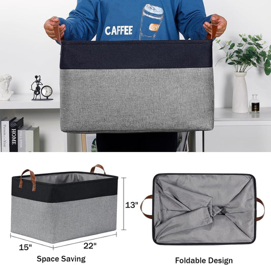 DULLEMELO Extra Large Storage Basket 22X15, 70L Foldable Fabric Toys Baskets Organizer Bins, Black&Grey