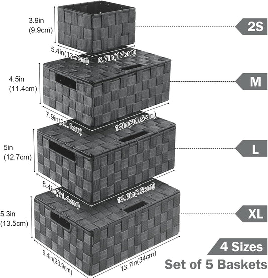 Storage Bins with Lids, Woven Storage Box Organizer Containers Decorative Baskets Cube for Clothes Bedroom Closet Office (5 Pack, Grey)