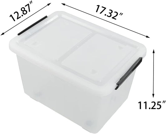 80 L Extra Large Plastic Storage Box, Clear Large Plastic Storage Bins with Wheels, 4-Pack