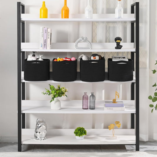 Storage Baskets for Shelves Organizing, Woven Cotton Rope Baskets for Storage, Book Basket, Towel Basket, 12.5"Lx9.1''Wx7.9''H (4 Packs) Gradient Black & Jute