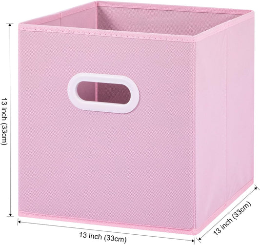 Stero Fabric Storage Bins 6 Pack Fun Colored Durable Storage Cubes with Handles Foldable Cube Baskets for Home, Kids Room, Closet and Toys Organization Pink