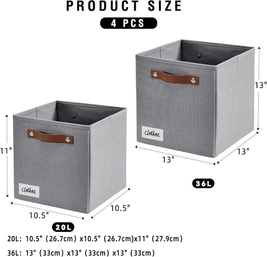 Collapsible Fabric Storage Cube Bins with 2 Reinforced PU Handles, Foldable Storage Organizer Baskets for Closet, Shelves, Living Room | 13"x13"x13", 4 Pack, Black & Gray