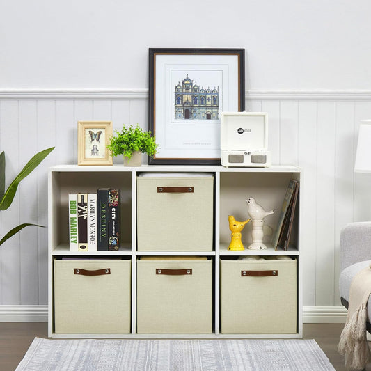 Stero 13x13x13 Inch Fabric Storage Bins 6 Pack Fun Colored Durable Storage Cubes with Handles Foldable Cube Baskets for Home, Kids Room, Closet and Toys Organization White
