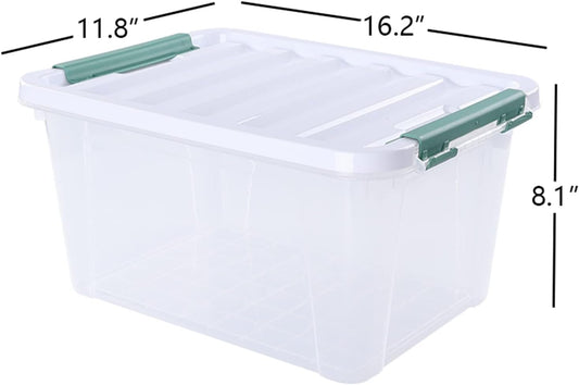 Xyskin 14 Quart Clear Storage Bins with Lid and Green Handle, Storage Latch Box/Bin Organizing Container