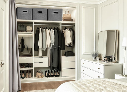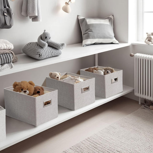DECOMOMO Storage Bins for Shelves Robust Fabric Closet Bins for Shelves Toy Storage Clothes Books (Pack of 3 – Light Grey)
