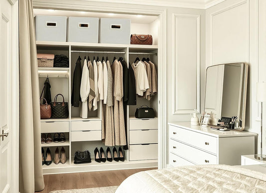 DECOMOMO Storage Bins for Shelves Robust Fabric Closet Bins for Shelves Toy Storage Clothes Books (Pack of 3 – Beige)