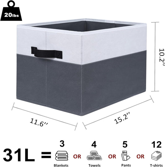 13 x 13 Inch Fine Linen Storage Bins with Handles,Fabric Cube Boxs,Collapsible Basket Organizers for Shelves for Home, Closet Drawers (Black/Gray-4 Pack)