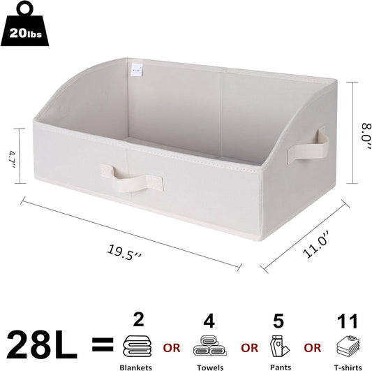 WUIKE Closet Storage Bins, Large Trapezoid Storage Boxes with Handles, Fabric Storage Baskets for Organizing Clothes, Sheets, Blankets, Decorative Storage Bins, White & Beige