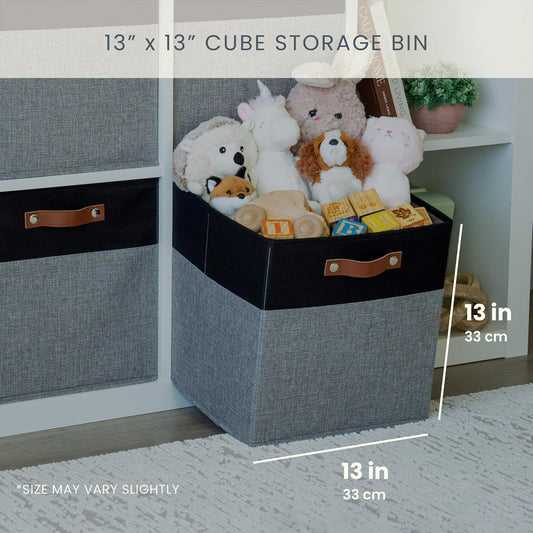13 x 13 Inch Fine Linen Storage Bins with Handles,Fabric Cube Boxs,Collapsible Basket Organizers for Shelves for Home, Closet Drawers (Black/Gray-6 Pack)