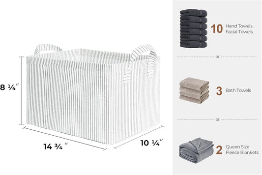 TheWarmHome Storage Bins Basket - Storage Baskets for Organizing Shelves,Home Closet Organizer for Book Shelf Organization,Fabric Storage Cubes,Medium Decorative Grey Basket Gift