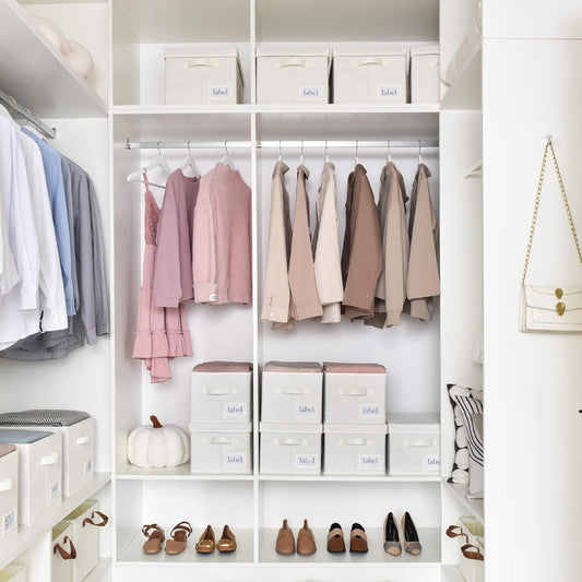 GRANNY SAYS Cloth Storage Bin with Label Holder, Closet Organizers and Storage Shelves, Sweater Storage Boxes for Closet Room, Storage Baskets for Organizing, Pearl White, Extra Large, 3-Pack