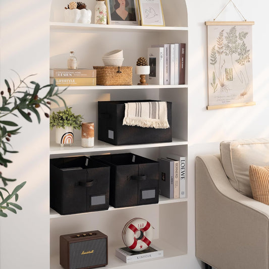 GRANNY SAYS Storage Bins, Storage Baskets for Shelves, Fabric Storage Bins for Clothes, Closet Organization Bin, Collapsible Storage Bin with Handles, Decorative Storage Box, Black, Large, 3-Pack