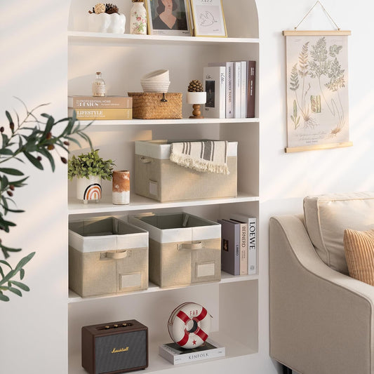 GRANNY SAYS Storage Baskets for Organizing, Fabric Storage Bins for Shelves, Closet Storage Boxs, Clothing Storage and Organization, Decorative Storage Bins, Khaki&Ivory, Large, 3-Pack