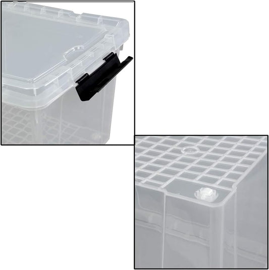 Ggbin 34 Quart Clear Lidded Storage Container Tote, Plastic Storage Box Bin with Black Latch, 4 Packs