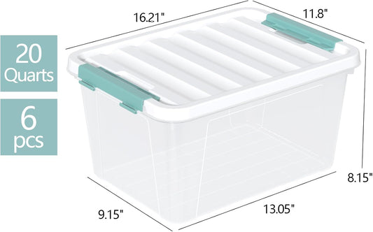 Zopnny 20 Quart Clear Latching Container Box, Plastic Storage Bin with Latching Lid, 6 Packs