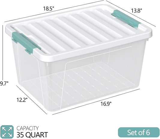 Zopnny 6-Pack 35 Quart Plastic Latch Storage Box with Lid, Stackable Latching Storage Bin, Clear
