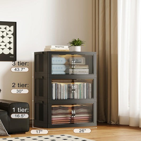 SAILUN 136Gal/543Qt Stackable Storage Bins Folding Collapsible Storage Bins with Lid, Closet Organizers and Storage, Storage Box with Door Black 26" W x 17" D x 71" H