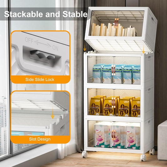 Extra Large Stackable Storage Bins with Lids & Wheels & Door, 660QT-165QT/41GAL*4Pack Foldable Collapsible Closet Organizers, Plastic Containers Drawers for Bedroom Dorm Garage