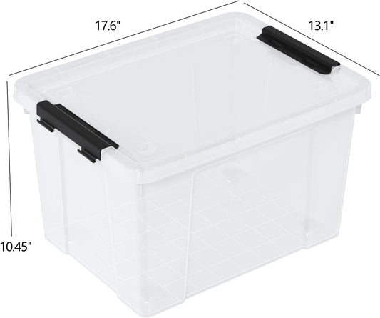 18 L Clear Latch Storage Bins with Handle, 4 Pack Plastic Storage Box with Lids