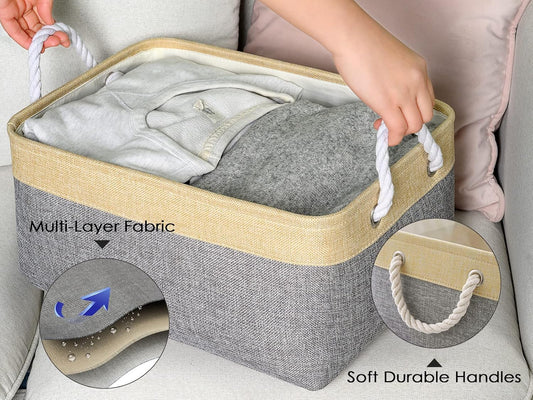 TheWarmHome Storage Basket for Organizing - Fabric Large Cubes 3 Pack 16x12x12 inch Baskets, Cube Storage Bin for Shelves Organizer Closet Cloth Gift Toy (Gold & Grey)