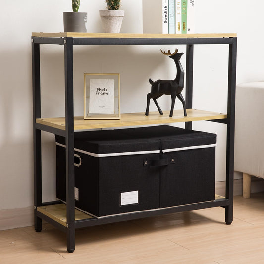 PRANDOM Storage Boxes with Lids [3-Pack] Fabric Collapsible Storage Bins Organizer Containers Baskets Cube with Cover for Home Bedroom Closet Office Nursery Black(23.4X15.9X11.5
