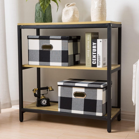 PRANDOM Collapsible Storage Bin with Lid [3-Pack] Fabric Foldable Storage Box Organizer Container Basket Cube with Cover for Home Bedroom Closet Office Nursery Black and White Grid(14.9x9.8x9.8)