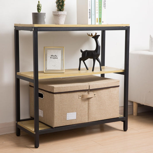PRANDOM Storage Bins with Lids [3-Pack] Jute Fabric Foldable Storage Boxes Organizer Containers Baskets Cube with Cover for Home Bedroom Closet Office Nursery khaki(23.4X15.9X11.5