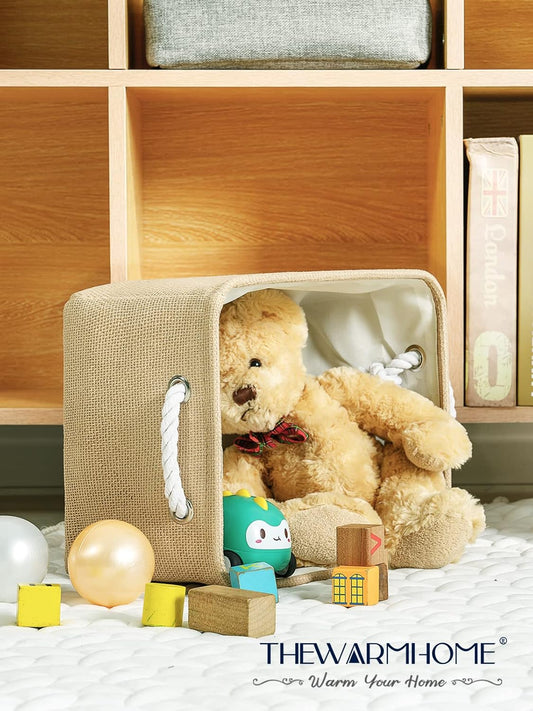 TheWarmHome Storage Bins for Shelves - Medium 3Pack 13.8L*9.8W*6.7H inch Canves Storage Basket for Organizing, Fabric Storage with Handles for Clothes Baby Dog Toys(Beige)