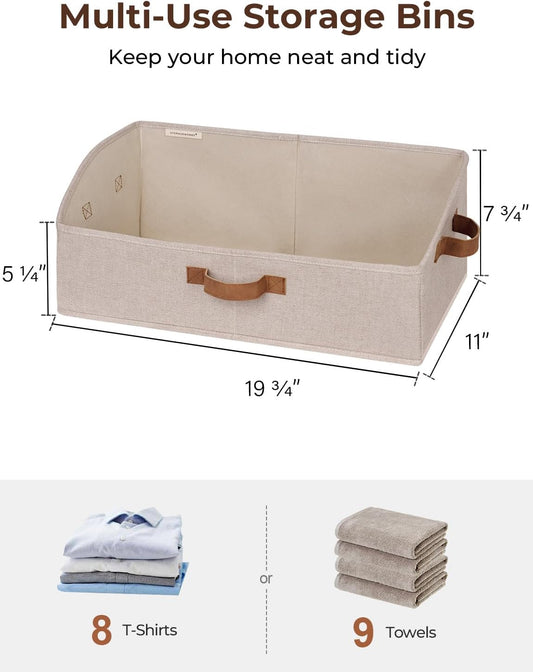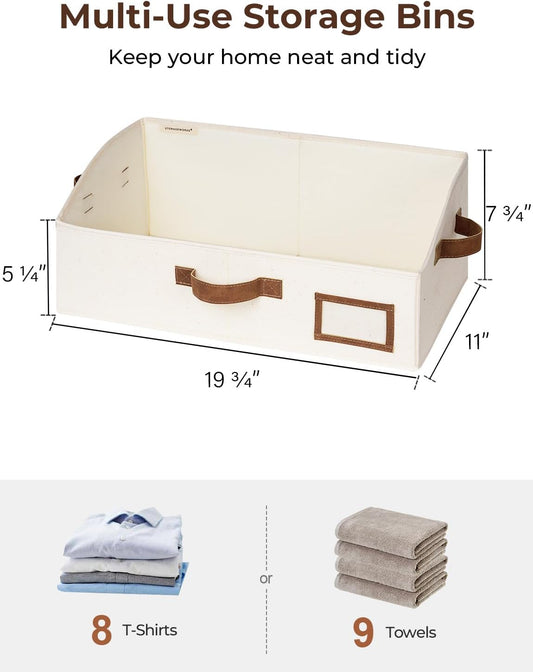 StorageWorks Closet Storage Bins, Trapezoid Organizer Box for Shelves, Fabric Clothes Bin, Foldable Organizing Baskets with Handles, Large, Ivory White, 3-Pack
