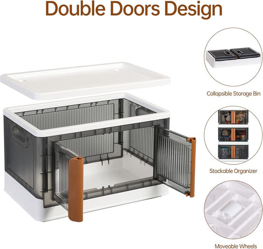 HAIXIN Storage Bins with Lids, Collapsible and Stackable Storage Bins, Plastic Closet Organizer, 8.4 Gal Folding Storage Box, Containers for Organizing with Door, 1 Pack