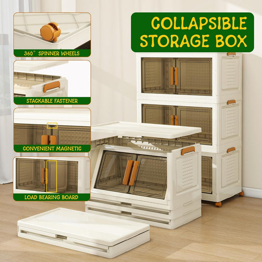 HAIXIN Closet Organizers and Storage, 4 Doors Opening Stackable Storage Box, 6.86 Gal Plastic Dorm Room Essentials, Folding Storage Container with Wheels, Cube Bins for Room Organizer, 3 Pack