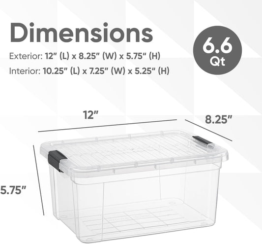 Superio Storage Bins with Lids- 4 Pack, 6.6 Qt Clear Boxes for Organizing, Stackable Plastic Containers- BPA Free, Non-Toxic, Odor Free, Organizer for Home, Office, Dorm